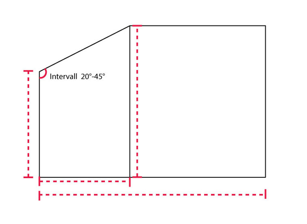 For skråskjæret dører må tak vinkelen ligge i intervallet 20-45°.
