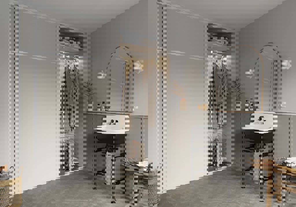 Fjern plastemballasje og kantbeskyttere på dørene. Legg gjerne dørene ned på et mykt underlag, eller støtt dem forsiktig opp til en vegg med de gulvgående hjulbeslagene ned mot gulv.