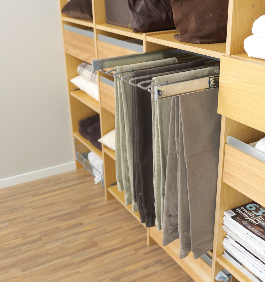 Stativet monteres mellom to flexisider. For bukser som ikke skal krølles og bør henge fritt. Bukseholderen trekkes helt ut fra flexiseksjonen med skinner. Bukseholderen leveres i to forskjellige bredder tilpasset våre flexiseksjoner - 431 mm bredde og 600 mm bredde.