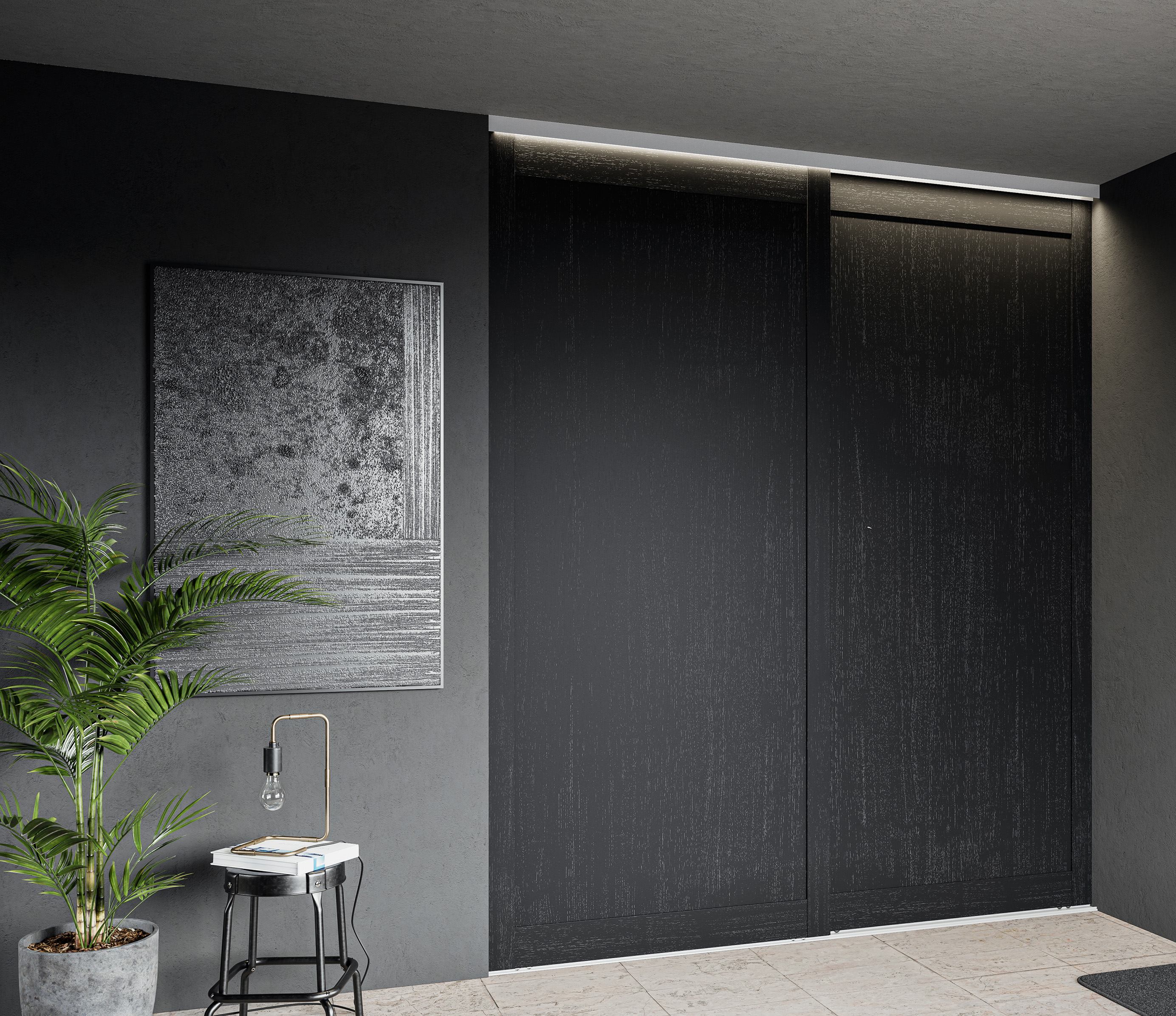 Kan bestilles med Softclose for kontrollert lukning. Ta kontakt med oss for bestilling. Alle skyvedører blir levert med brikke for dørposisjonering som standard.