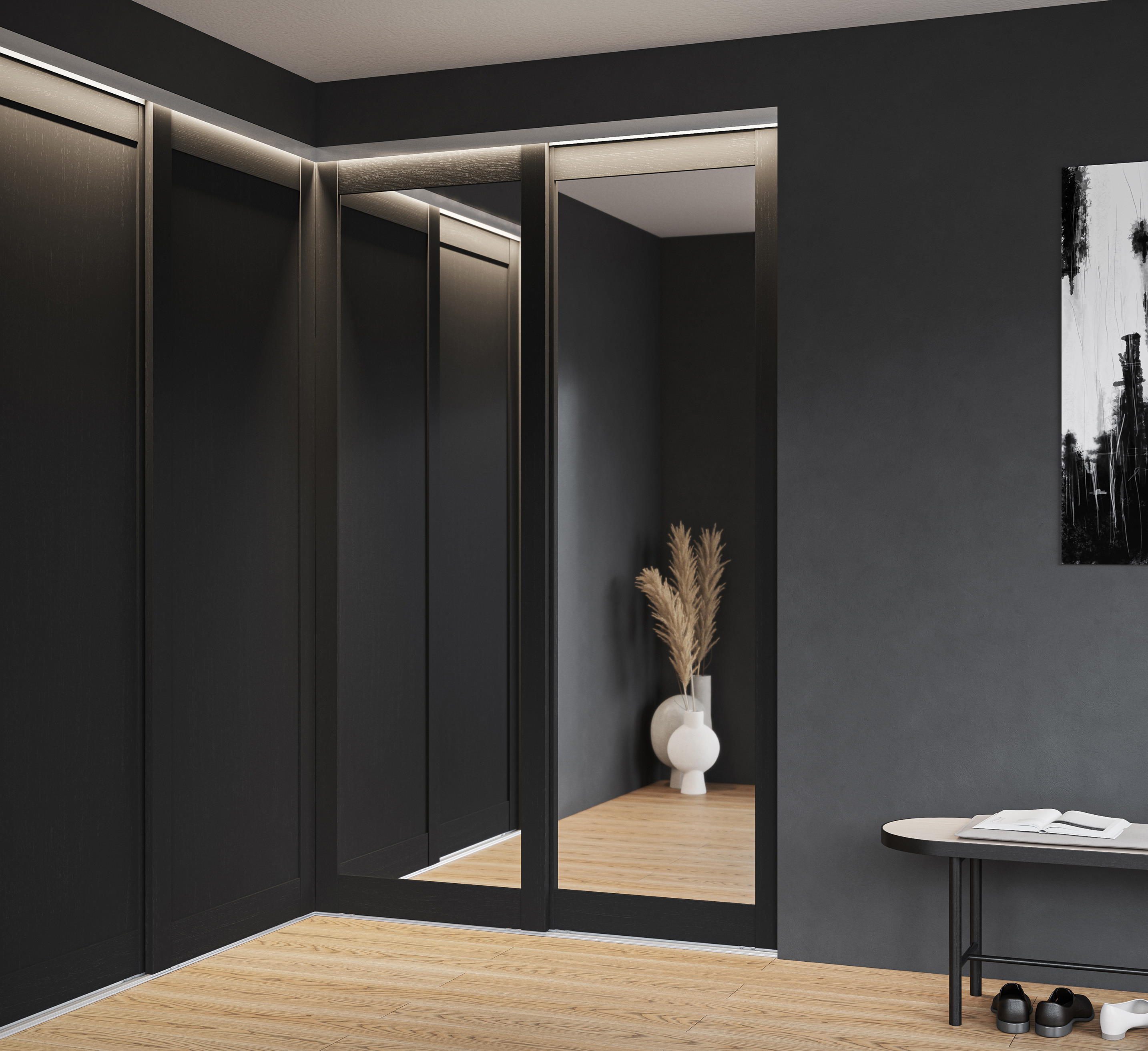 Langlo leverer kvalitet, og har stort fokus på praktiske detaljer. Bunnskinnen leveres med opphøyde spor, der hjulene ruller elegant og lydløst i motsetning til skinner med dybdespor, som samler skitt og støv.