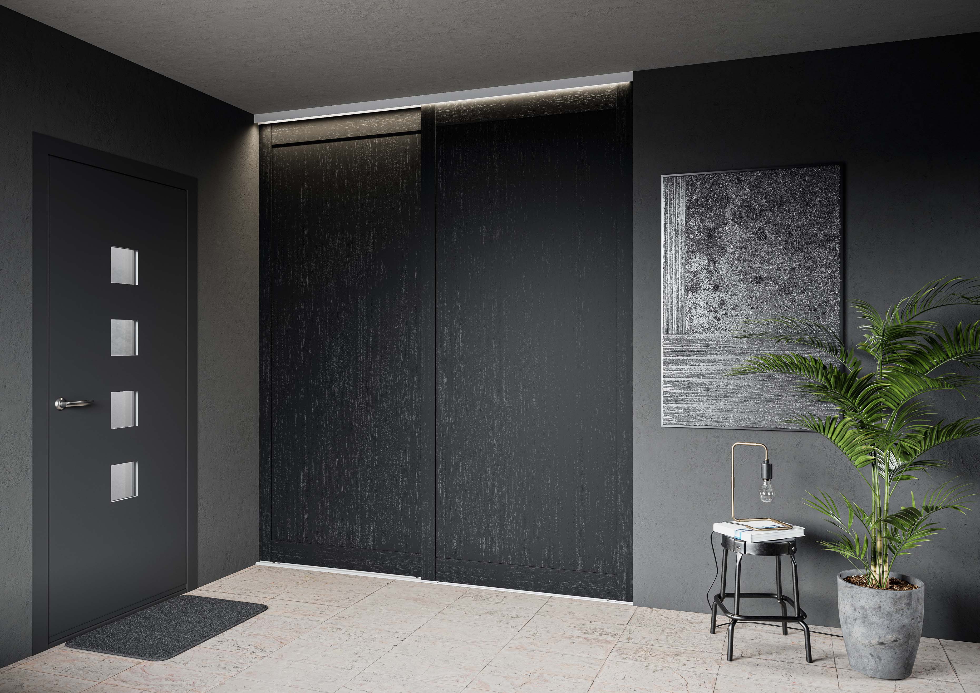 Kan bestilles med Softclose for kontrollert lukning. Ta kontakt med oss for bestilling. Alle skyvedører blir levert med brikke for dørposisjonering som standard.