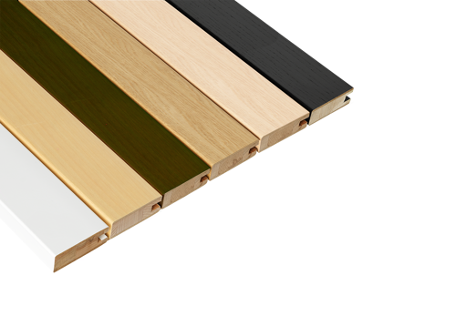 Aluminiumsskinner i to- eller tresporsløsning. Alternative farge; hvit, naturell eller sort.